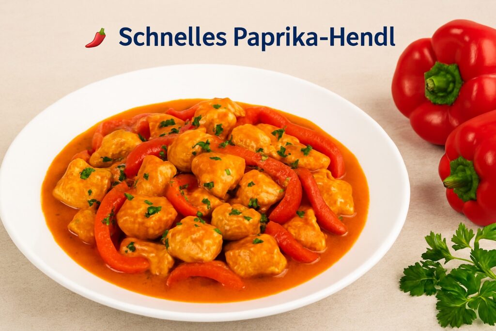 Paprika‑Hendl gehört zu den Klassikern der schnellen, herzhaften Küche. Zartes Hendlfleisch, aromatische Paprika und eine cremige Sauce – in kurzer Zeit entsteht ein Gericht, das nach viel mehr Aufwand schmeckt, als es tatsächlich ist. Ideal für alle, die gut essen möchten, ohne lange in der Küche zu stehen.